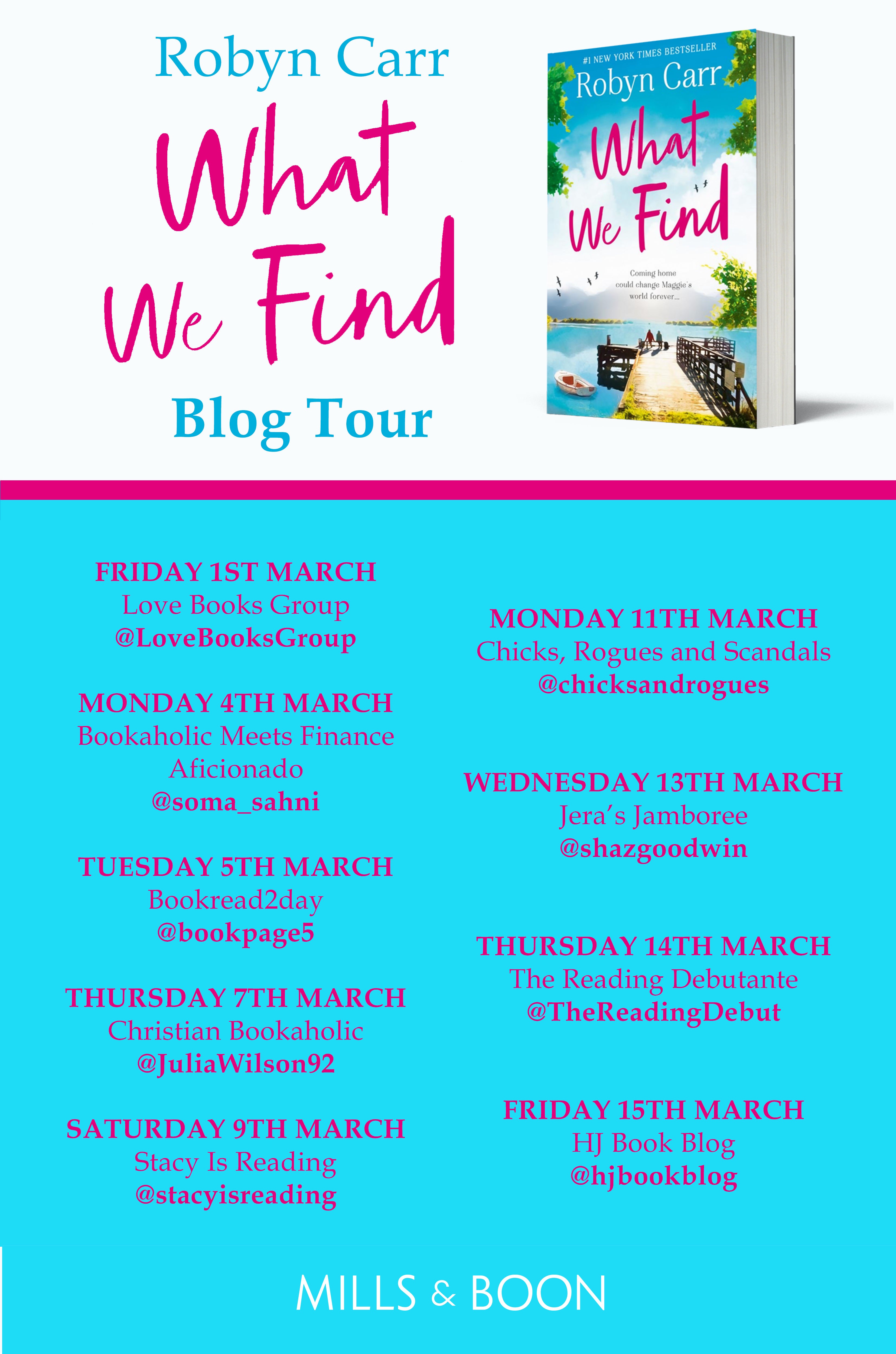What We Find by Robyn Carr is my first that I have read. I enjoyed this book so much that I’m now following Robyn on Goodreads and have applied for her newsletter via her amazing website. What We Find by Robyn Carr is published by my favourite book publisher Mills & Boon.