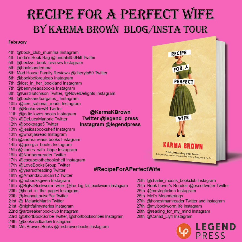 To be honest I’ve been trying to break away from all the crime novels I generally read, so Recipe For A Perfect Wife, has given me such enjoyment, that I’m now following author Karma Brown.