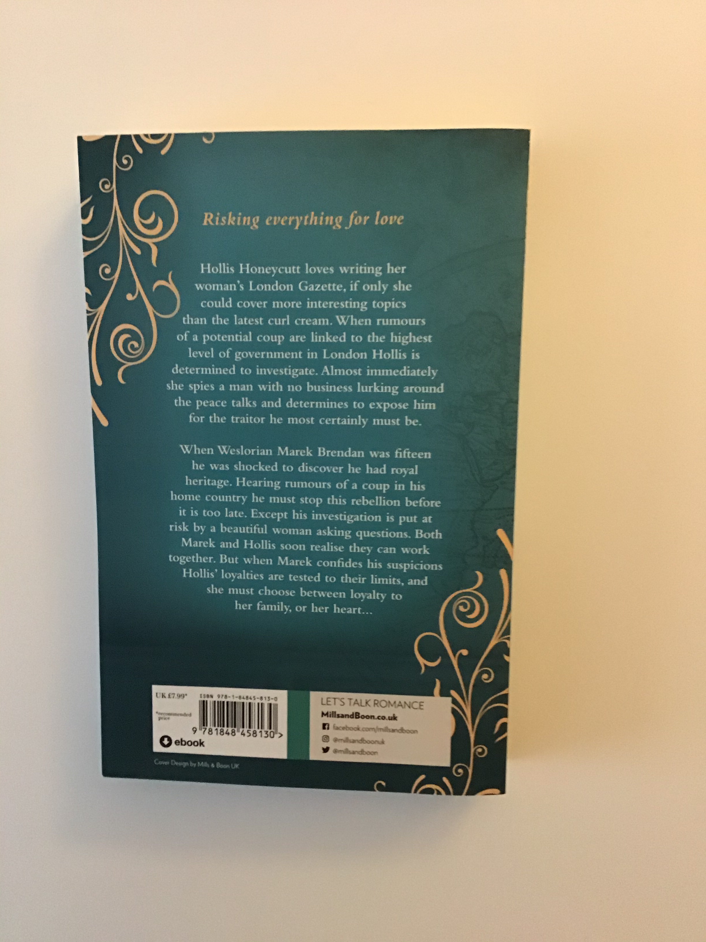Hollis Honeycutt loves writing her woman’s London Gazette, if only she could cover more interesting topics than the latest curl cream. When rumours of a potential coup are linked to the highest level government in London Hollis is determined to investigate. Almost immediately she spies a man with no business lurking around the peace talks and determines to expose him for the traitor he most certainly must be.