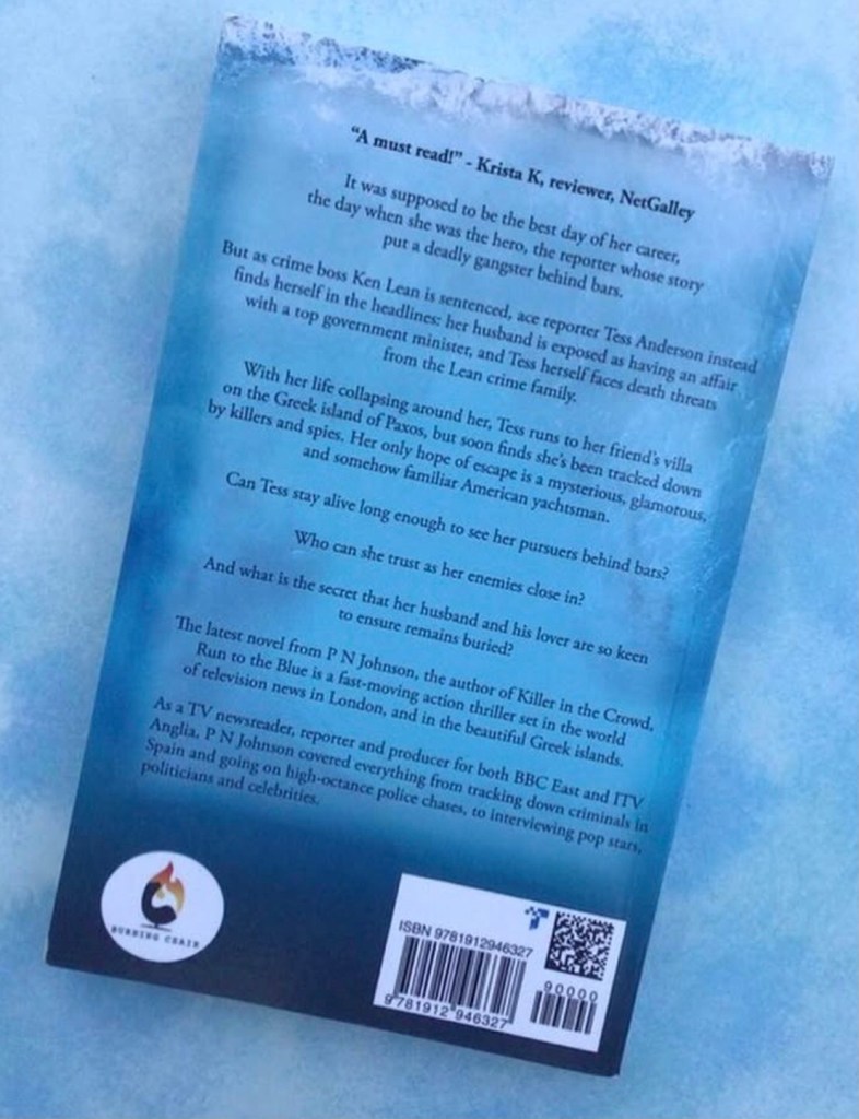 In my view, RUN TO THE BLUE by PN JOHNSON, is the crime book of the year! This is one of those books all crime lovers need to read. I particularly loved this story as I love reading about fictional marriage problems. I found this page-turning book really gripping with its interwoven themes with a gangster and marriage in crisis. Tess Anderson is a star reporter on the news, with interviewing people from prime minsters, to stars and victims. Tess even secretly filmed a gangster, Ken Lean murdering one of his victims. It’s come to the day, Where Tess is in court to watch gangster Ken Lean be sentenced to prison. Unfortunately just before Ken Lean’s court case begins, Tess has an important message to see her boss. Steve gives Tess some devastating news. Her husband Seven who is a celebrity marriage expert, is having an affair with an MP, a member of the Cabinet, who is one of the most powerful women in the country. Too add to the upset Tess is being followed by someone. Tess is sent off packing to Greece, for her safety by her best friend Jane. But will Tess be safe in the villa in Paxos Greece? Surely no one will find her there!