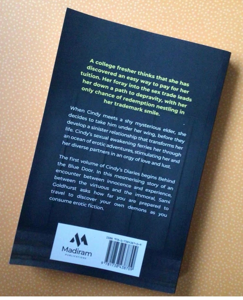 A college fresher thinks that she has discovered an easy way to pay for her tuition. Her foray into the sex trade leads her down a path to depravity, with her only chance of redemption nestling in her trademark smile. When Cindy meets a shy mysterious elder, she decides to take him under her wing, before they develop a sinister relationship that transforms her life. Cindy’s sexual awakening ferries her through an ocean of erotic adventures, stimulating her and her diverse partners in an orgy of love and lust. The first volume of Cindy’s Diaries begins Behind the Blue Door. In this mesmerising story of an encounter between innocence and experience, between the virtuous and the immoral, Sami Goldhurst asks how far you are prepared to travel to discover your own demons as you consume erotic fiction.
