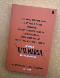 I TELL MYSELF AGAIN AND AGAIN I’LL GET THEM INTHE END. I ALWAYS DO. I’LL HUNT THEM DOWN, ONE BY ONE. I KNOW WHO THEY ARE, I KNOW WHERE THEY LIVE. BUT THEY WILL NEVER KNOW ME. MY NAME IS RITA MARSH. AND I AM UNSTOPPABLE.