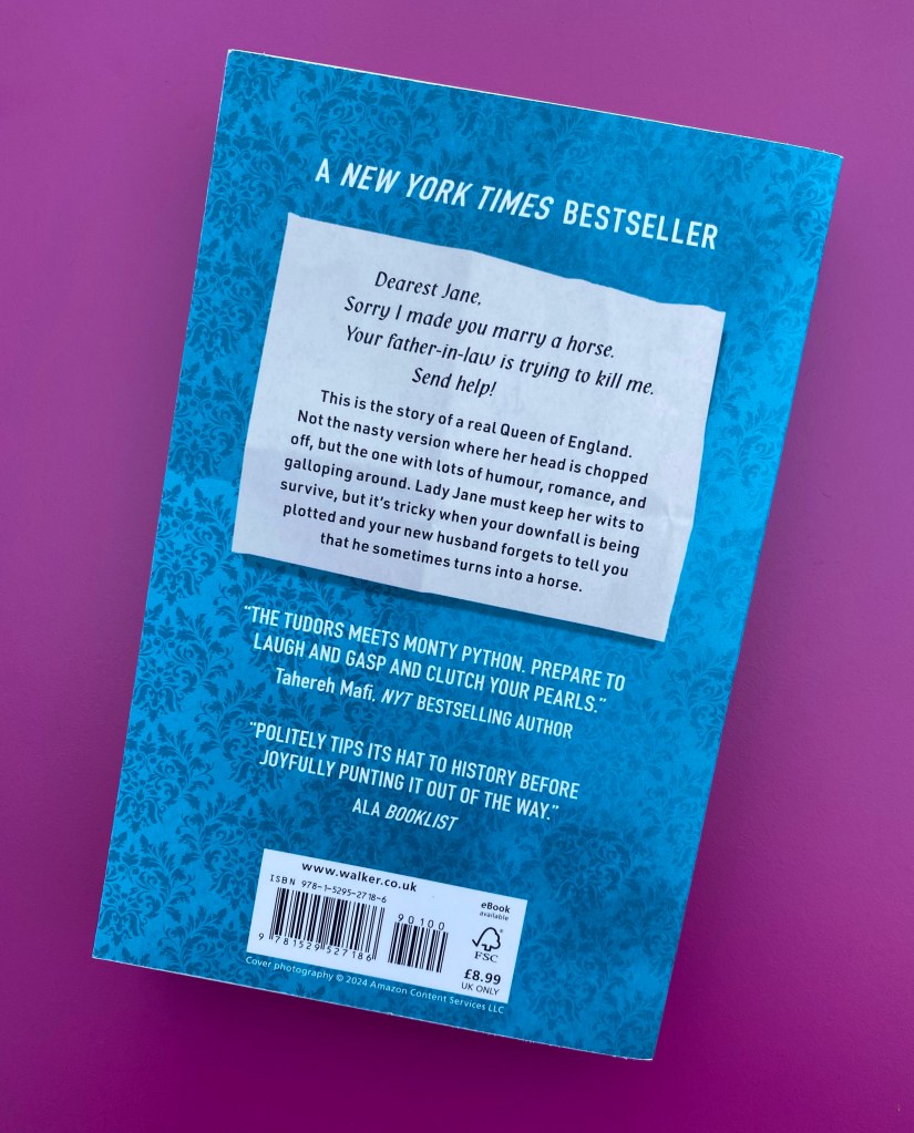 Dearest Jane, Sorry I made you marry a horse. Your father-in-law is trying to kill me. Send help! This is the story of a real Queen of England. Not the nasty version where her head is chopped off, but the one with lots of humour, romance, and galloping around. Lady Jane must keep her Wits to survive, but it’s tricky when your downfall is being plotted and your new husband forgets to tell you that he sometimes turns into a horse.