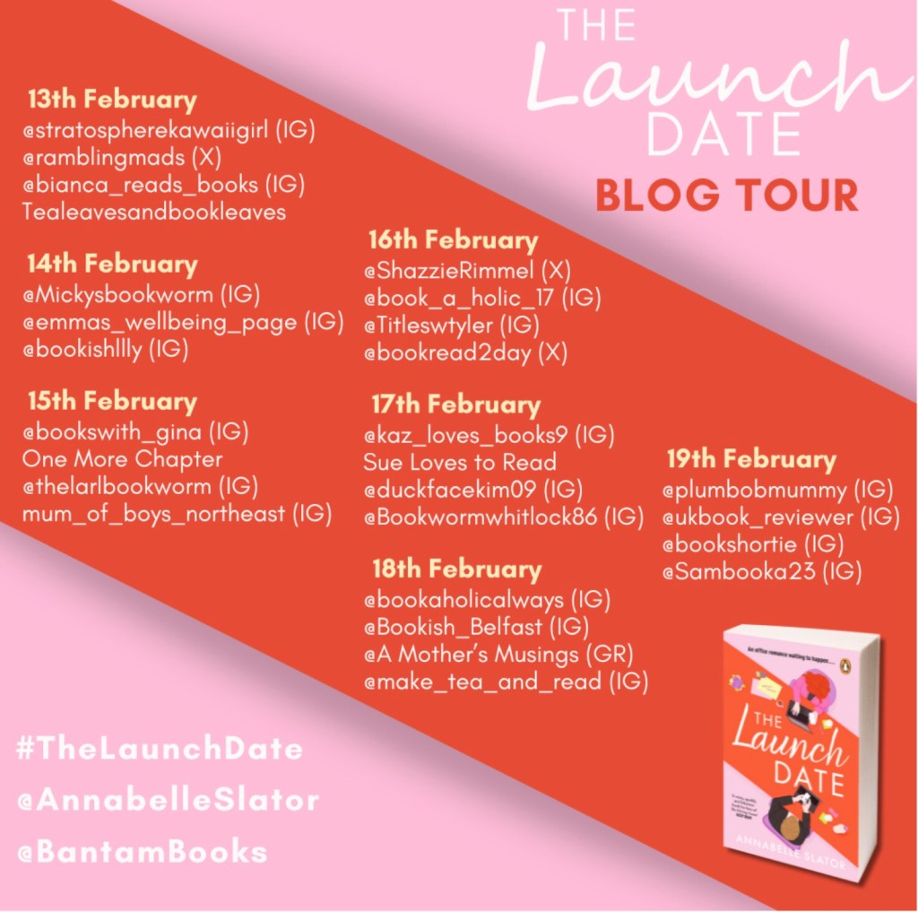 Annabelle Slator grew up writing stories in the depths of the British countryside. After achieving a degree in creative writing Annabelle spent most of her late teens and early twenties writing social media and blog posts for start-ups and tech companies in London. Nowadays, if she isn’t spending time writing, you can almost always find her obsessing over niche internet drama, practicing her fencing parry or mooching around vintage fairs and flea markets with her husband and two mini dachshunds, Gruffalo and Gryffin. The Launch Date is Annabelle’s first book, inspired by her time working in the world of dating apps. https://www.Instagram.com/annabelleslator https://www.Twitter.com/AnniSlator https://annabelleslatorbooks.com/