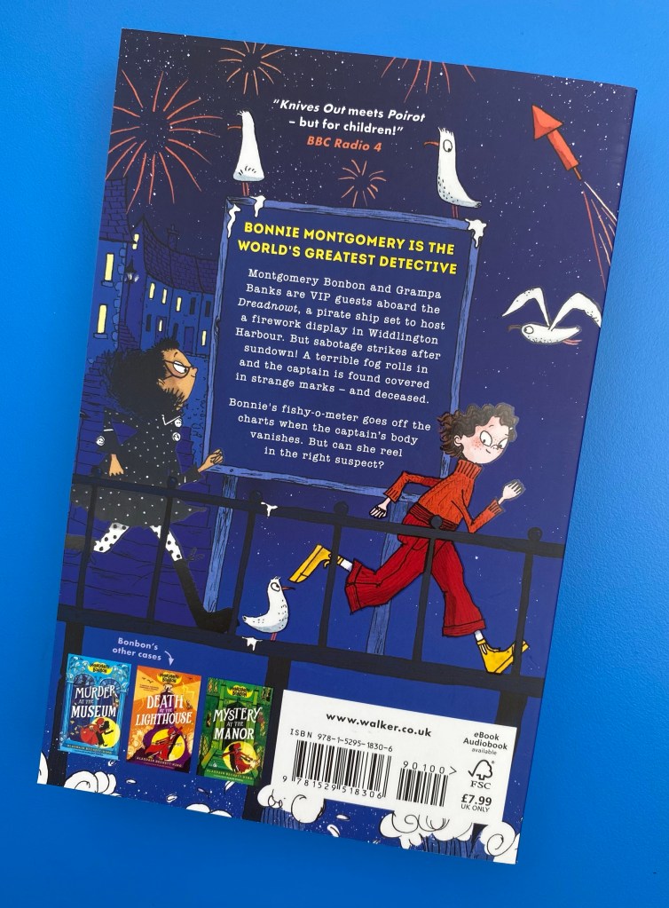 Bonnie Montgomery is the world’s greatest detective. Montgomery Bonbon and Grampa Banks are VIP guests aboard the Dreadnowt, a pirate ship set to host a firework display in Widdington Harbour. But sabotage strikes after sundown! A terrible fog rolls in and the captain is found covered in strange marks and deceased. Bonnie’s fishy-o-meter goes off the charts when the captain’s body vanishes. But can she reel in the right suspect?