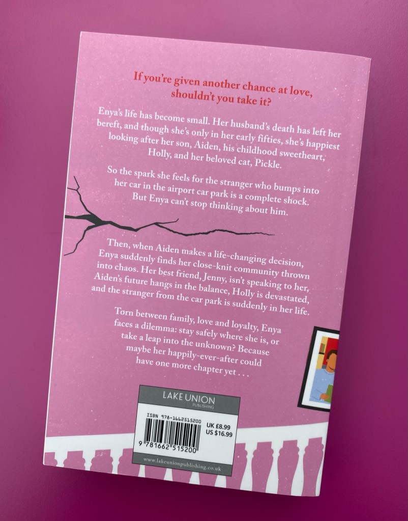 If you’re given another chance at love, shouldn’t you take it? Enya’s life has become small. Her husband’s death has left her bereft, and although she’s only in her early fifties, she’s happiest looking after her son, Aiden, his childhood sweetheart, Holly, and her beloved cat, Pickle. So the spark she feels for the stranger who bumps into her car in the airport car park is a complete shock. But Enya can’t stop thinking about him. Then, when Aiden makes a life-changing decision, Enya suddenly finds her close-knit community thrown into chaos. Her best friend Jenny, isn’t speaking to her, Aiden’s future hangs in the balance, Holly is devastated, and the stranger from the car park is suddenly in her life. Torn between family, love and loyalty, Enya faces a dilemma stay safely where she is, or take a leap into the unknown? Because maybe her happily-ever-after could have one more chapter yet.