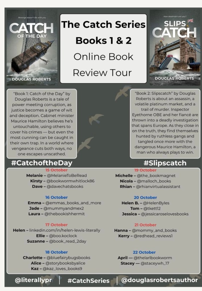 Douglas Roberts is the pen name of Robert Bernard Utting was born in South London 1955 and has lived in Surrey for the past 40 years with his wife and 3 sons. A lifelong storyteller with a flair of humour and suspense, he began writing fiction after a career managing a family property business and decades of competitive rallying, skiing, and other adventures that fuel his imagination. His novels combine sharp wit with high-stakes plots, from political corruption to international crime, drawing inspiration from his fathers wartime exploits and his own appetite for intrigue. The Catch series is his second set of thrillers , following the success of his Chase series and showcases his knack for turning lived experiences and daydreamed scenarios into gripping page-turning fiction. https://www.instagram.com/douglasrobertsauthor